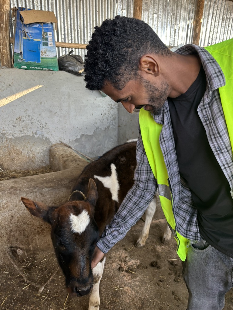 This is Mhretab Desbele, Keradion’s accountant, with one of the new calves. Mhretab works for a local brewery by day and volunteers for Keradion in his spare time.