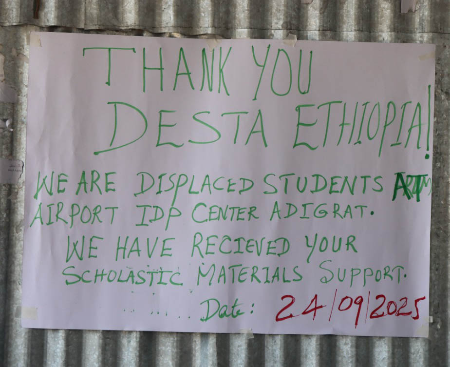 Since 2023 we have been working together with the Catholic Diocese of Adigrat to provide school materials for IDPs in their care. We currently provide basic supplies to allow 380 of the most vulnerable children in the camps to go to school, giving them a chance to progress towards a better life.