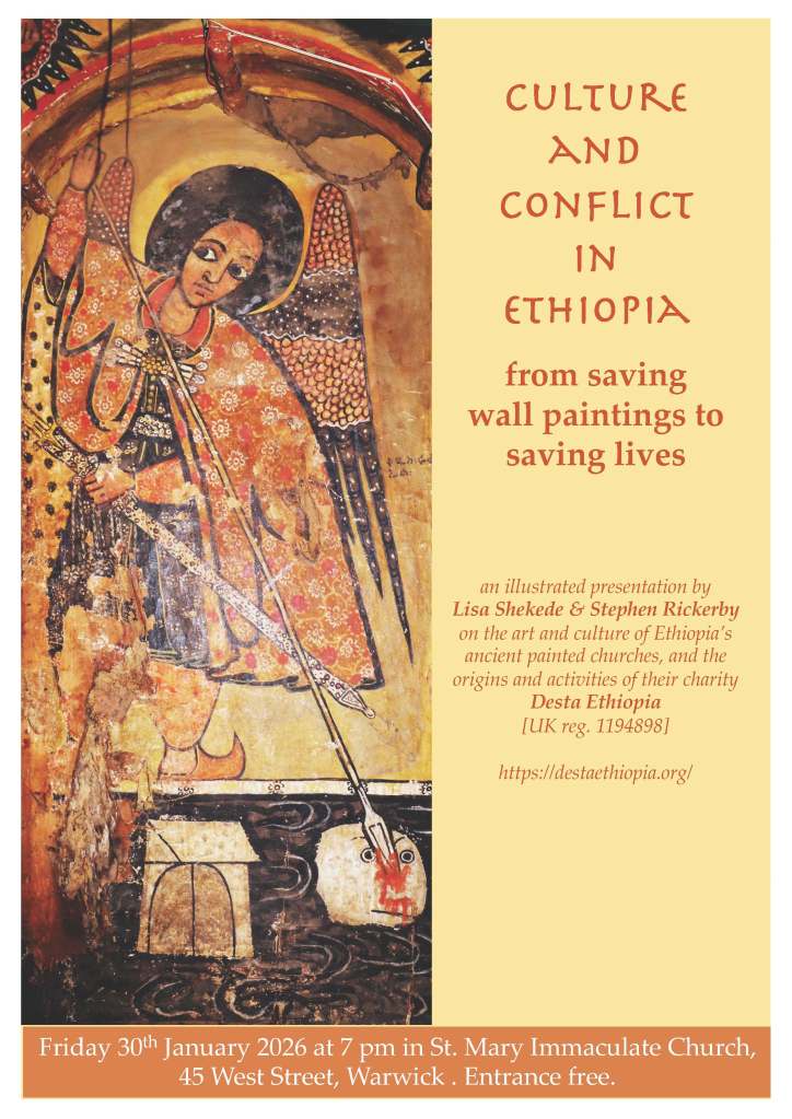 This friday Stephen and Lisa will be in Warwick to give an illustrated talk on how their conservation work in Ethiopia led to the founding of the humanitarian charity, Desta Ethiopia. The event is being kindly hosted by Fr. Patrick and the Catholic parish of St. Mary Immaculate, and entrance is free (for further details please see below).